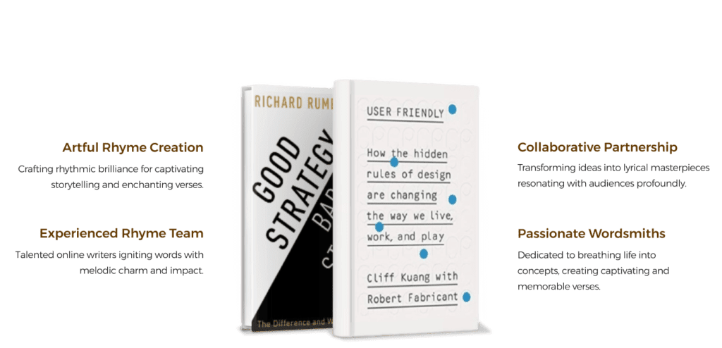 Our team consists of skilled and experienced rhyme writers who excel in various rhyme schemes and styles. Whether you’re seeking traditional rhymes, alternative rhymes, or unique combinations, our writers have the expertise to create captivating verses that resonate with your audience. When you choose us, you’re partnering with rhyme writing professionals who understand the nuances of rhythm, sound, and imagery.